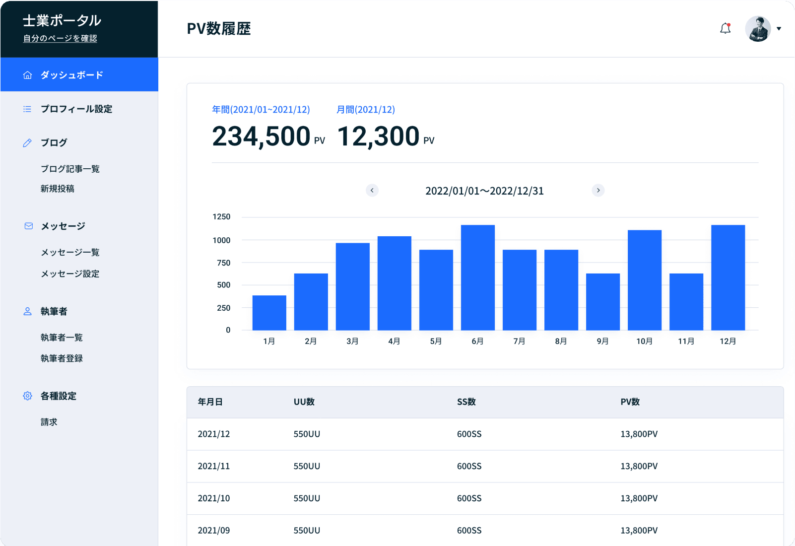 マイページとブログの閲覧数を月ごとに自動でグラフ化。マイページからいつでもご確認いただけます。
