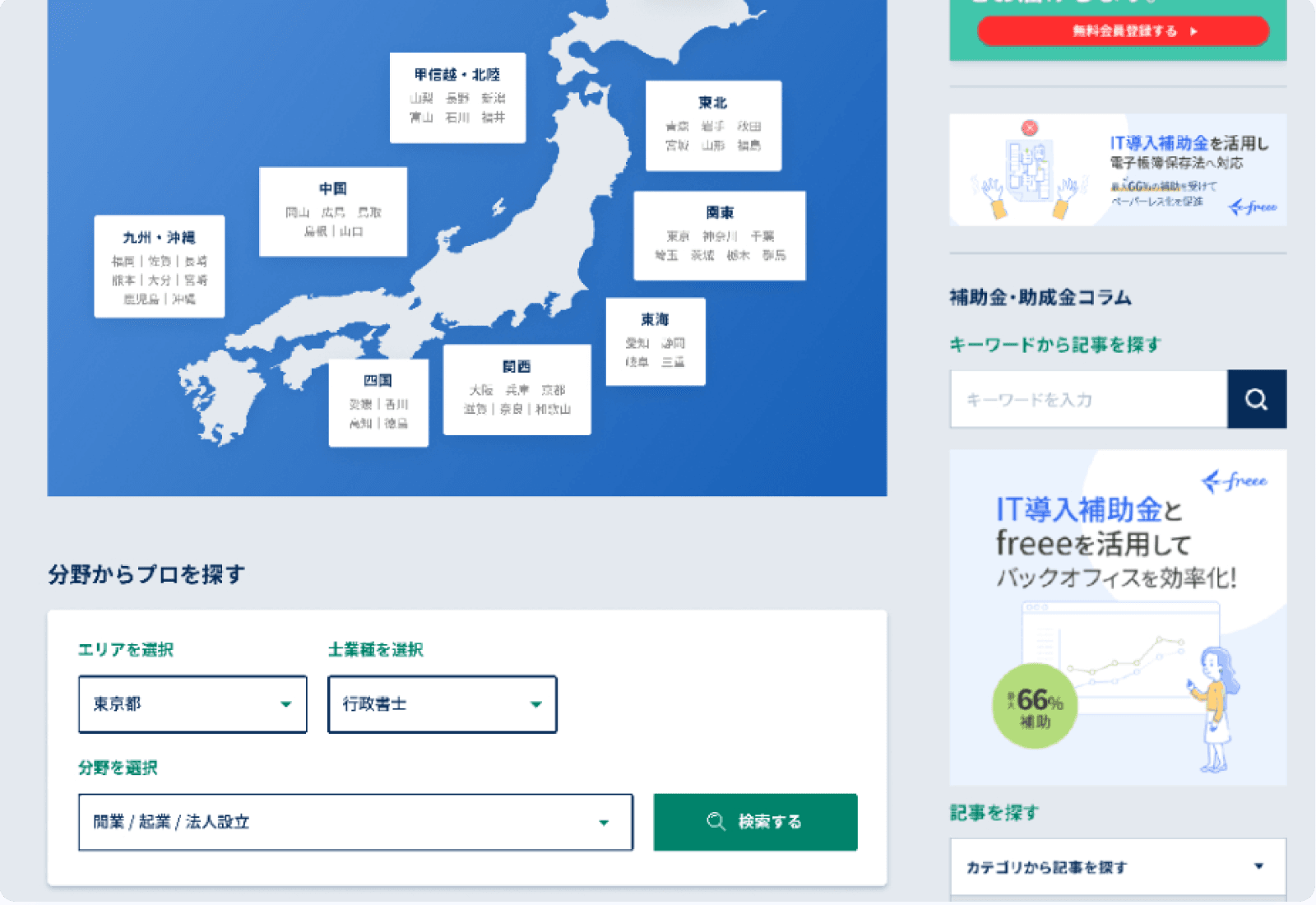 エリア・業種・分野・お悩み別に専門家を検索できます。