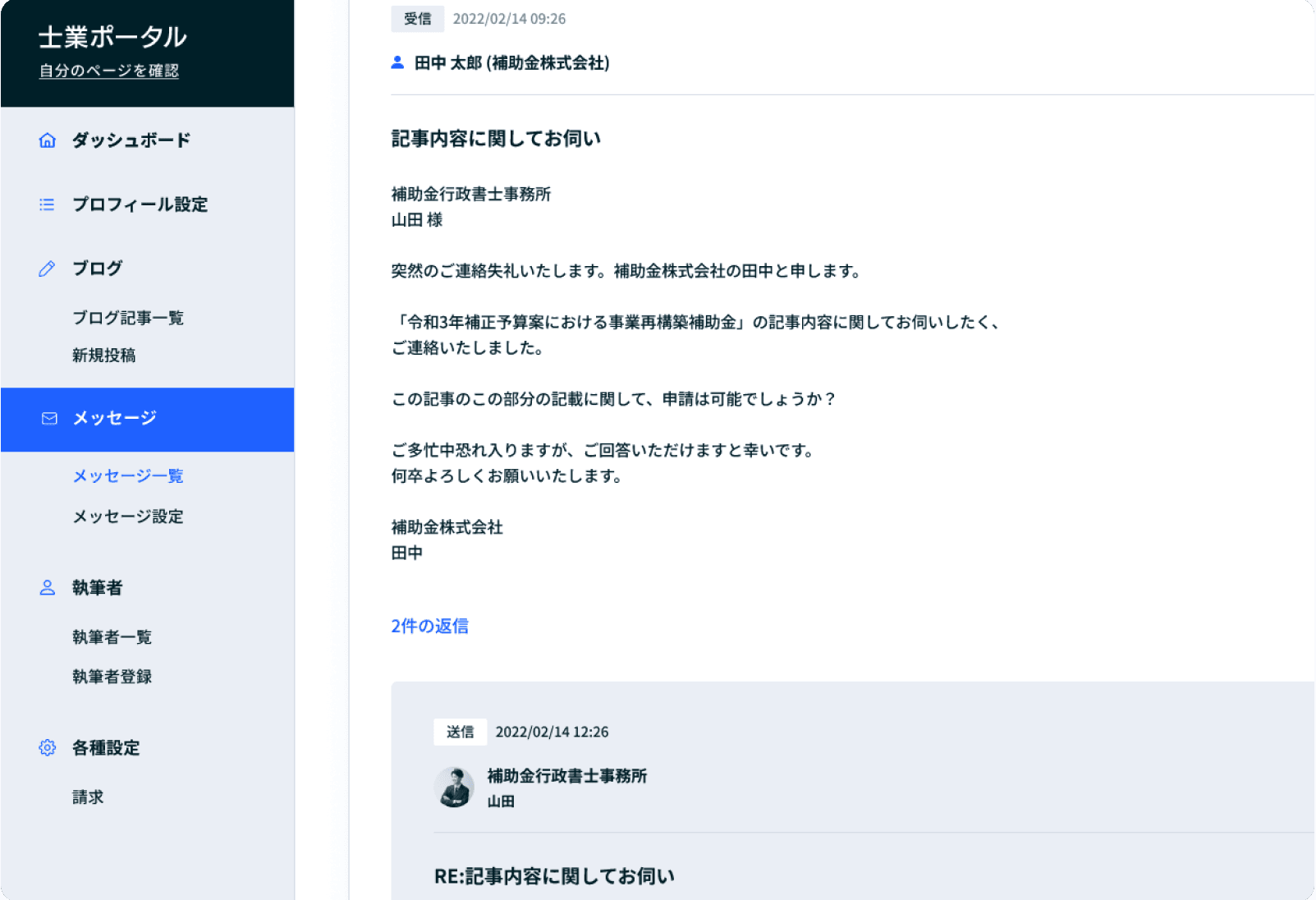 オプションとして、士業の方向けに補助金情報の発信を行っています。