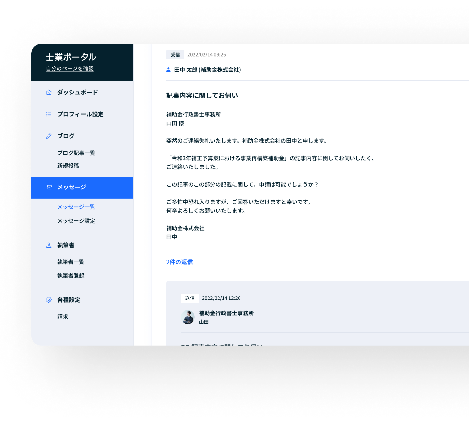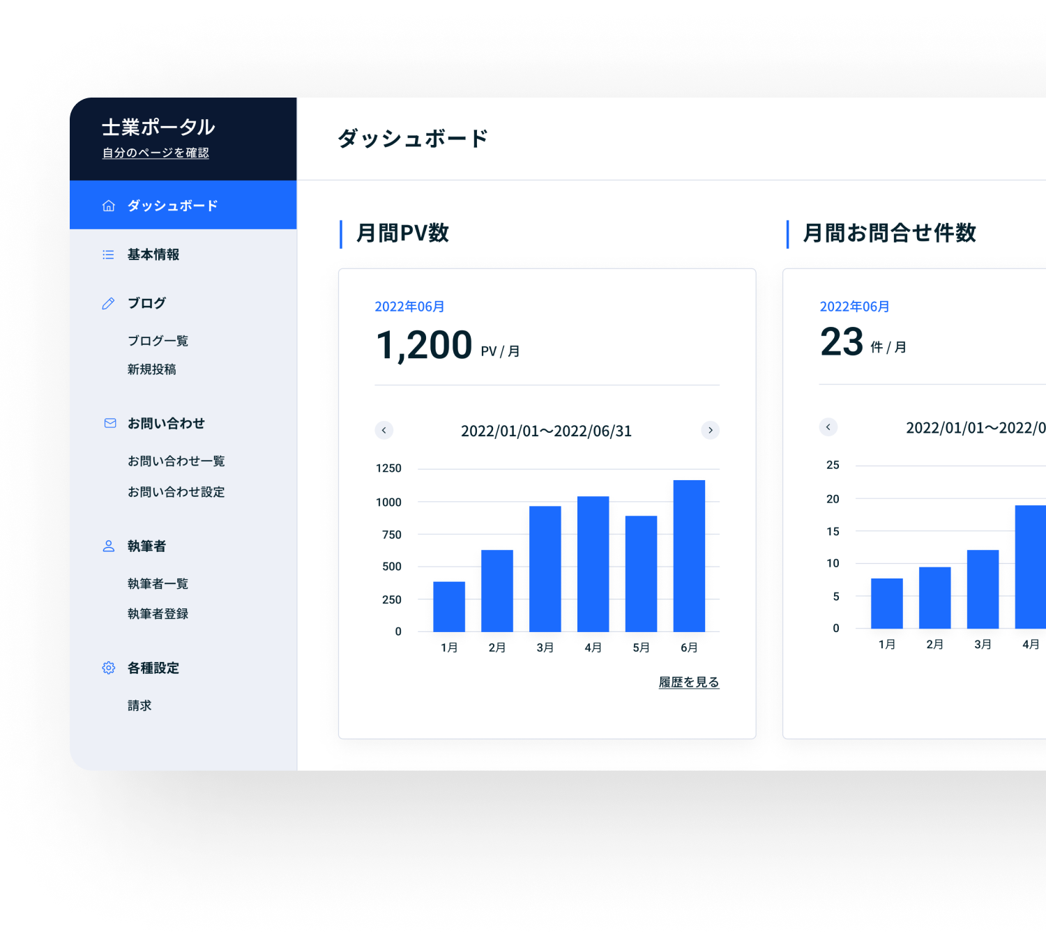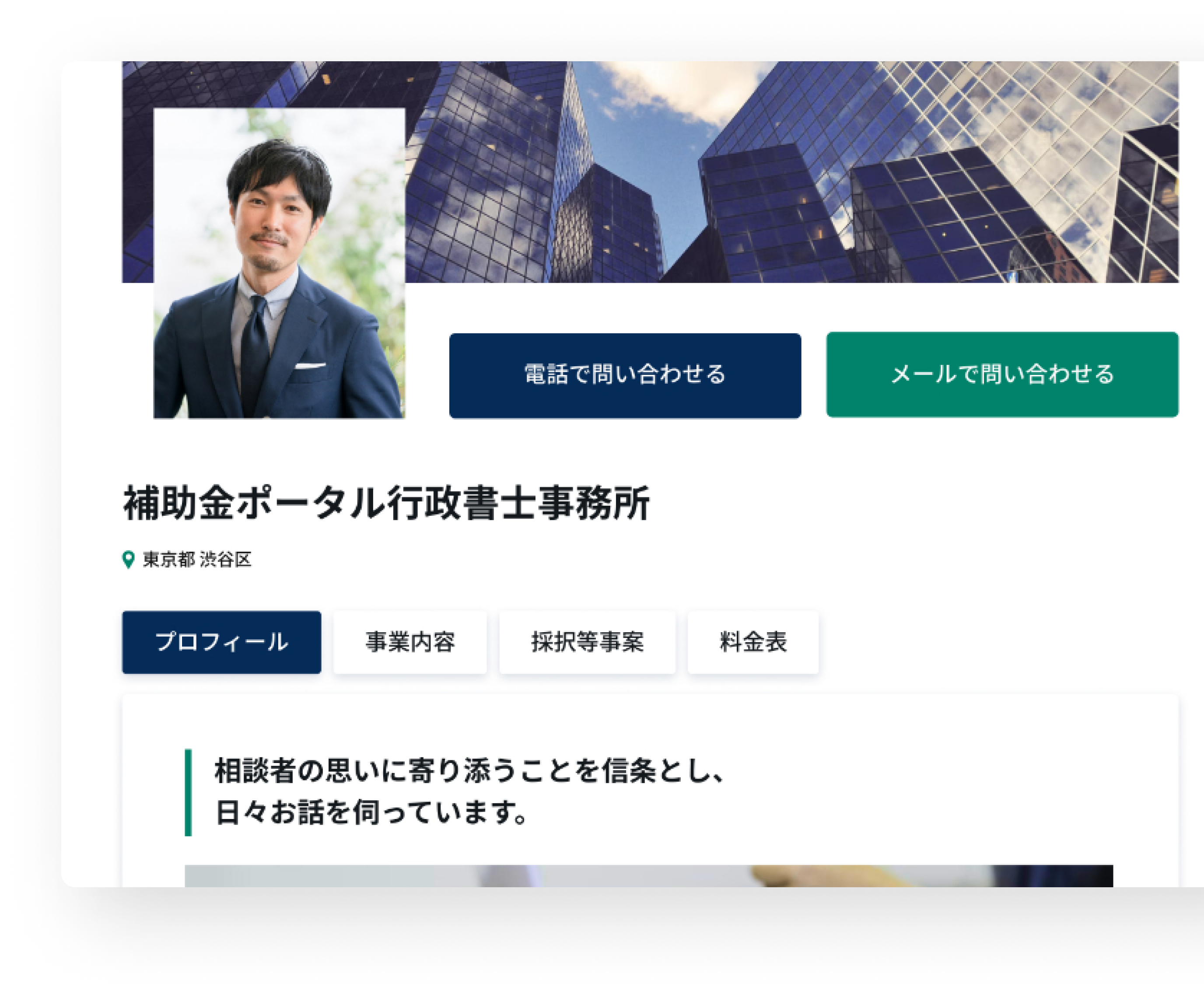 事務所マイページでは、サービス内容や料金、注力分野の記事を掲載していただくことで、注力分野やターゲットとする顧客に合った精度の高いお問い合わせを獲得できます。
